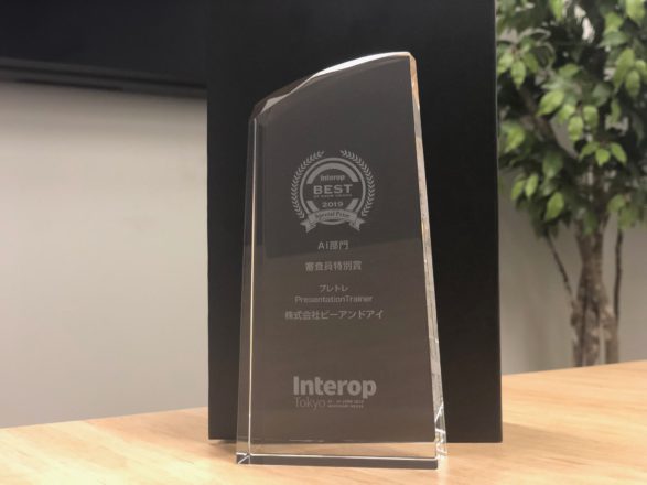 そのInterop Tokyoにて、出展各社の新製品やサービス、ソリューション、あるいはブースを審査しグランプリを決定する『Best of Show Award』が開催され、厳選なる審査を経て、ピーアンドアイが提供する「プレトレ」が【AI部門】にて審査員特別賞をいただきました。